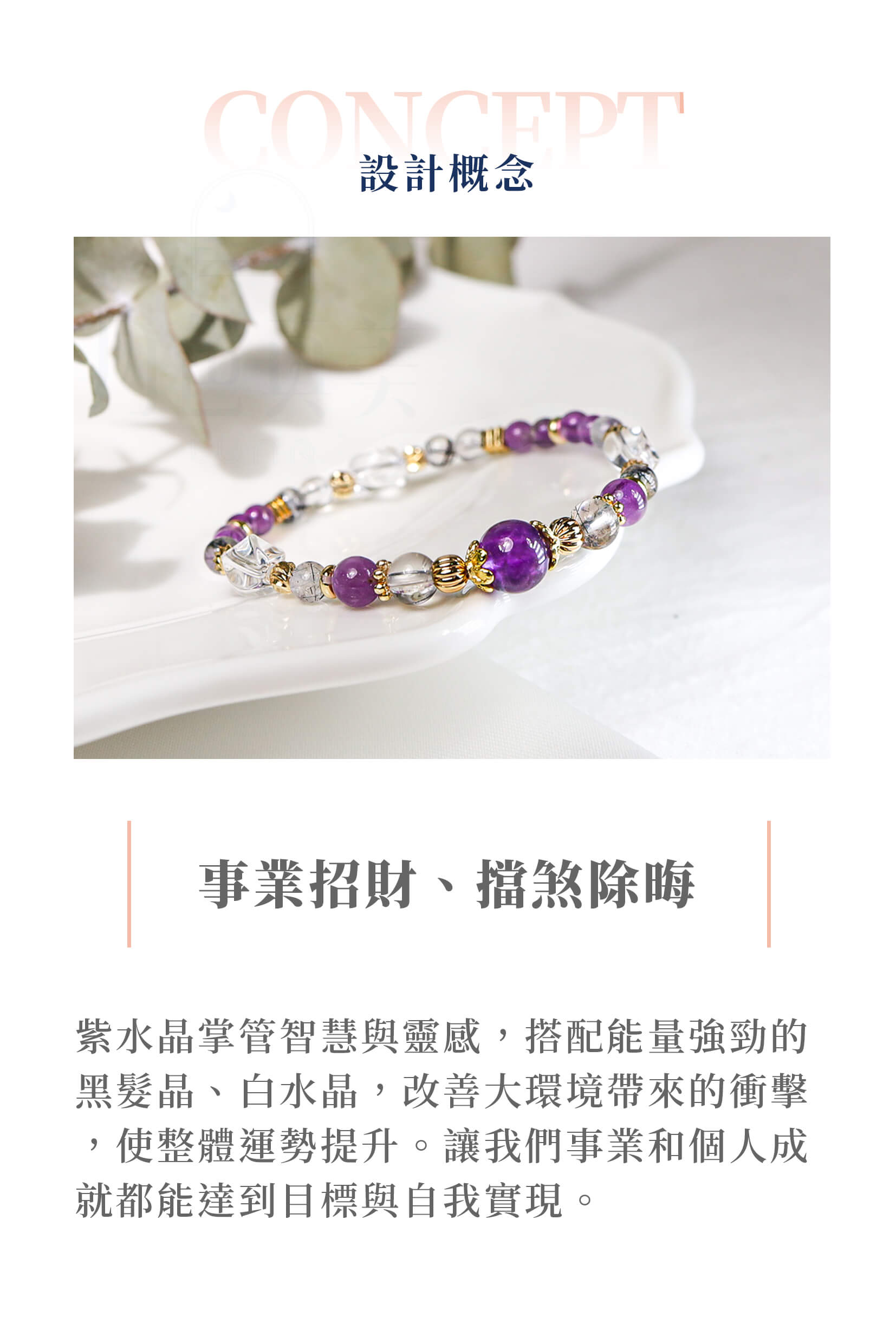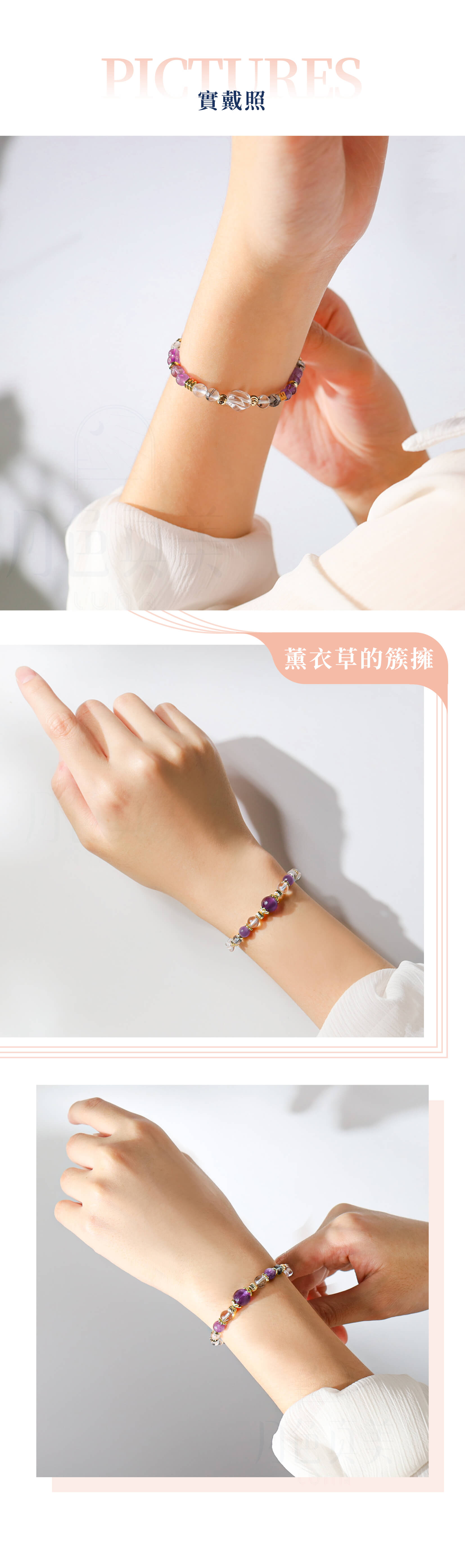 | 薰衣草的簇擁 | A48紫水晶黑髮晶白水晶手鍊