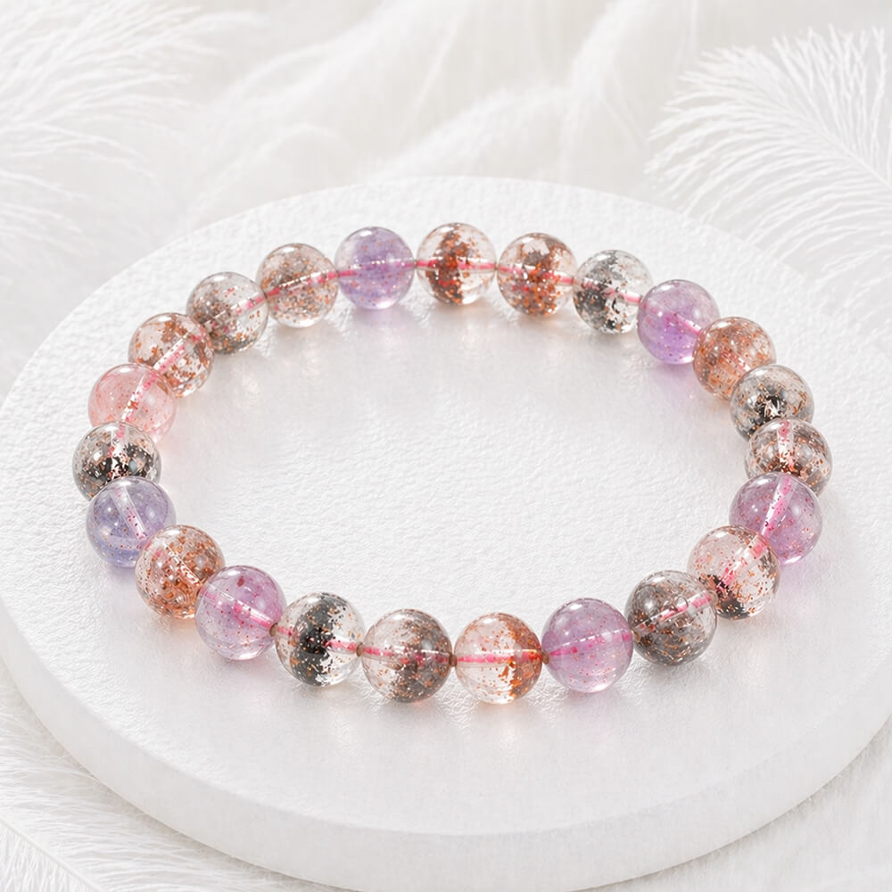 超七因包含七種礦物,能量豐富全面,在能量學中被認為對應七大脈輪平衡,有助於提升整體運勢、加強氣場與能量。是許多人選擇作為日常佩戴或生命轉折時的隨身水晶。